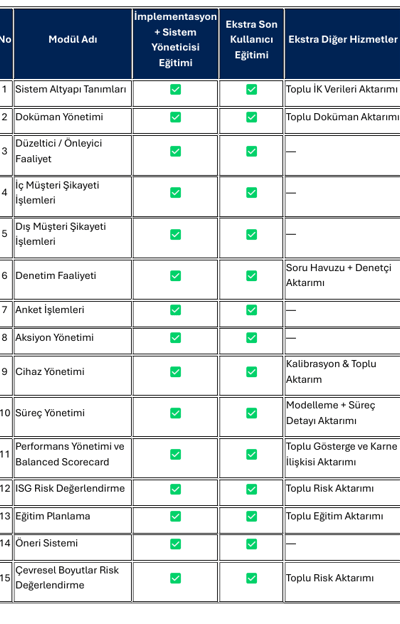 WorthyX olarak, QDMS ve Ensemble başta olmak üzere Entegre Yönetim Sistemleri alanındaki yetkinliğimizle, kurumunuza özel yapılandırmalar sunuyoruz.